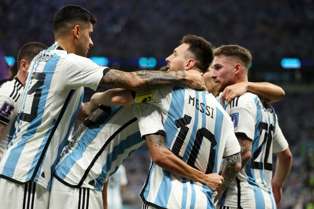 Nahuel Molina of Argentina celebrates after scoring the team’s first goal during the FIFA World Cup Qatar 2022 quarter final.